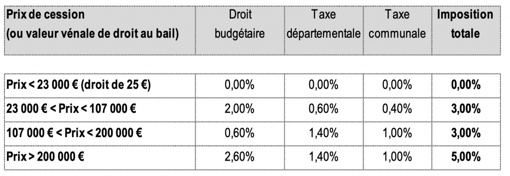 Barème des droits de mutation de cession de droit au bail